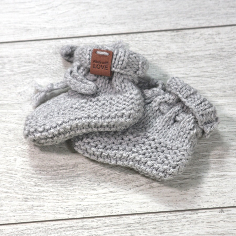 Gebreide Merino wollen slofjes grijs voor 0–6 maanden