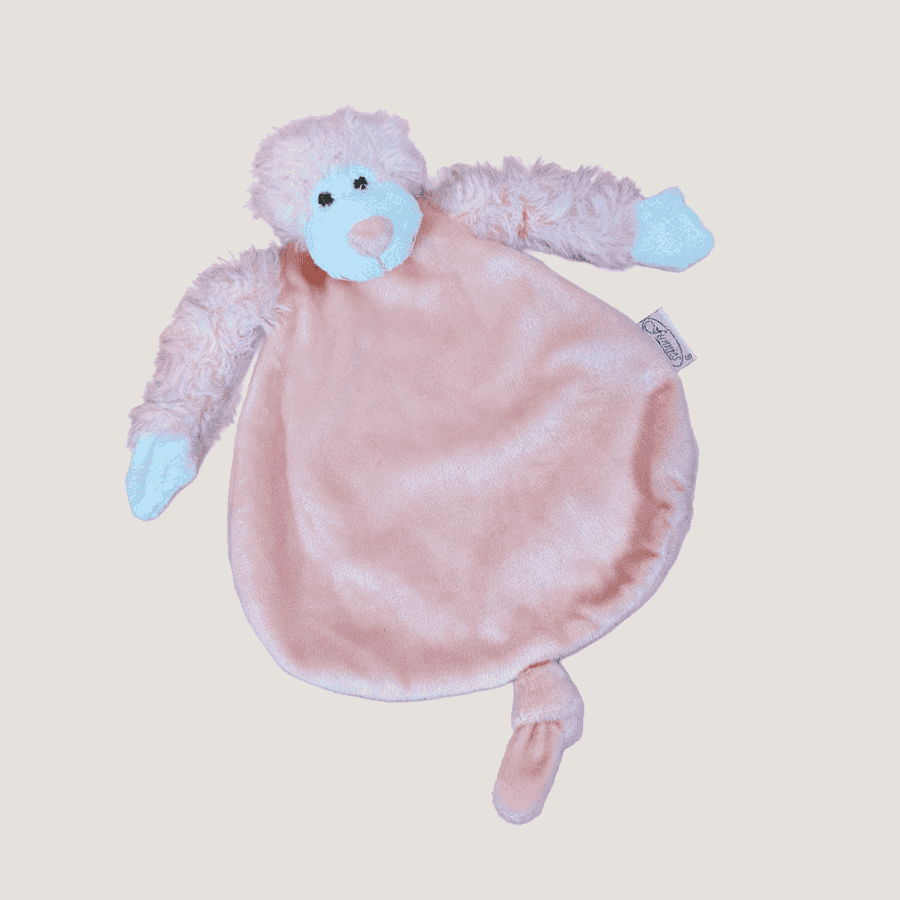 Dit Tutdoekje Slingeraap Peach is uitgevoerd als zachte knuffeldoek met een hondje en is geschikt voor dagelijks gebruik door jonge kinderen.