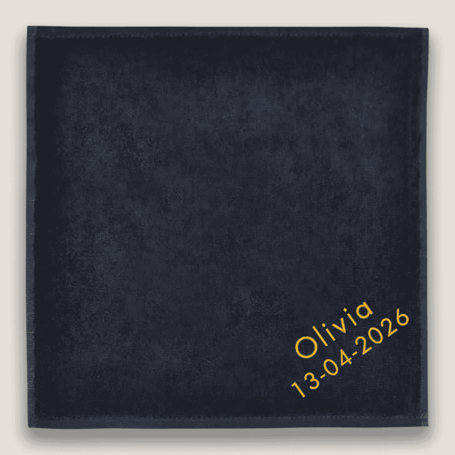 Met een formaat van 30×30 cm pakt u deze spuugdoek zwart geborduurd eenvoudig bij dagelijks gebruik.