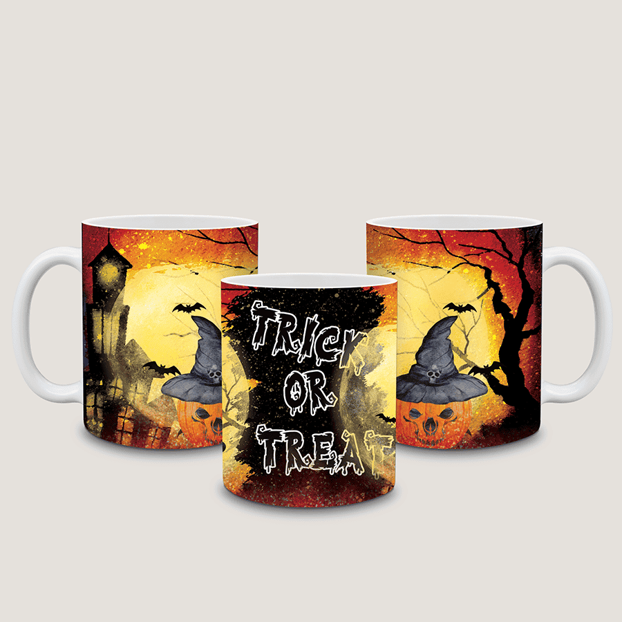 Deze drinkbeker “Halloween Trick or Treat ” uitgevoerd in keramiek en voorzien van een illustratie die aansluit bij het thema.