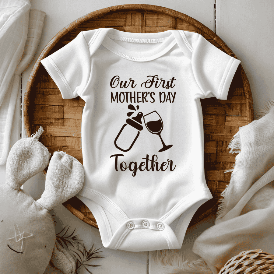 Romper met de tekst “First Mothersday”, speciaal ontworpen voor de eerste Moederdag.
