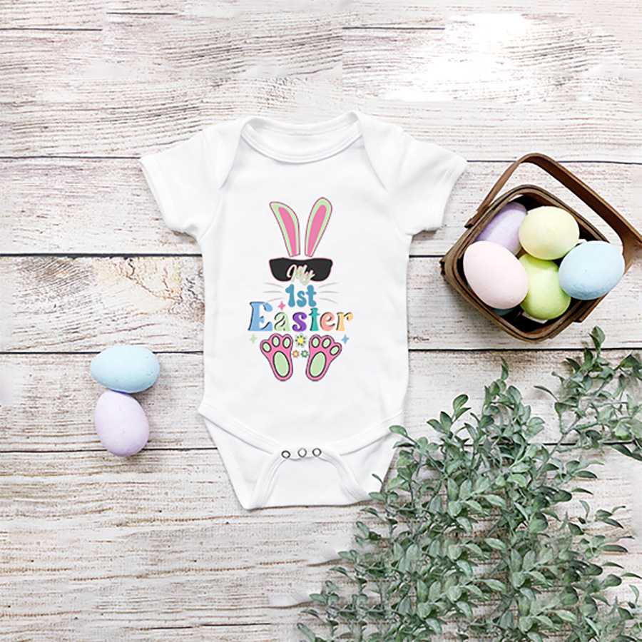 Romper “My First Easter Rabbit Sunglass” is ontworpen binnen het Paasthema en voorzien van een herkenbaar Paasontwerp.
