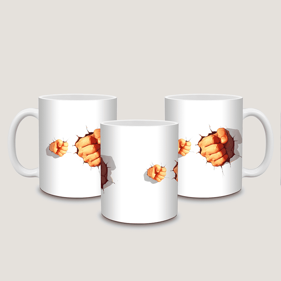 De drie mokken naast elkaar vormen het geheel rondom de mok