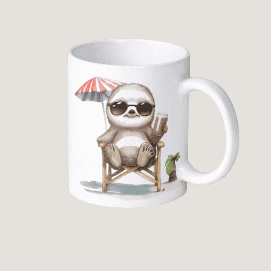 Deze drinkbeker met het zomer thema Sid the Sloth is uitgevoerd in keramiek en voorzien van een illustratie die past bij het thema.