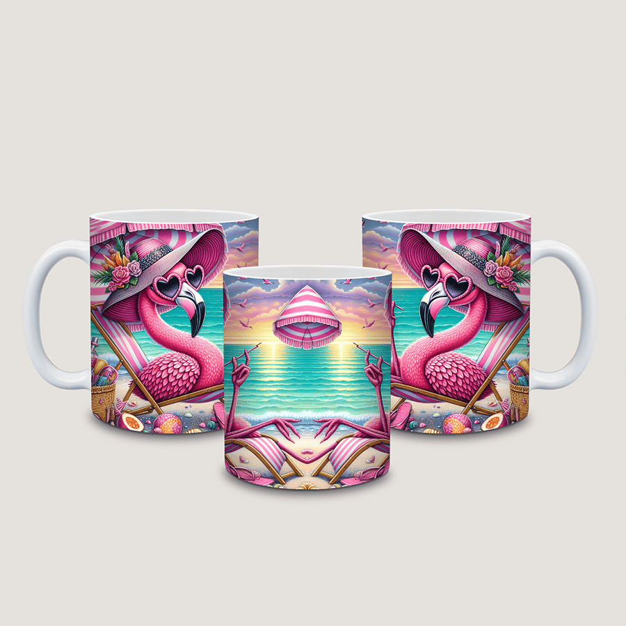 Deze drinkbeker met het zomer thema ” Fabulous Flamingo Beach” is uitgevoerd in keramiek en voorzien van een illustratie die past bij het thema.